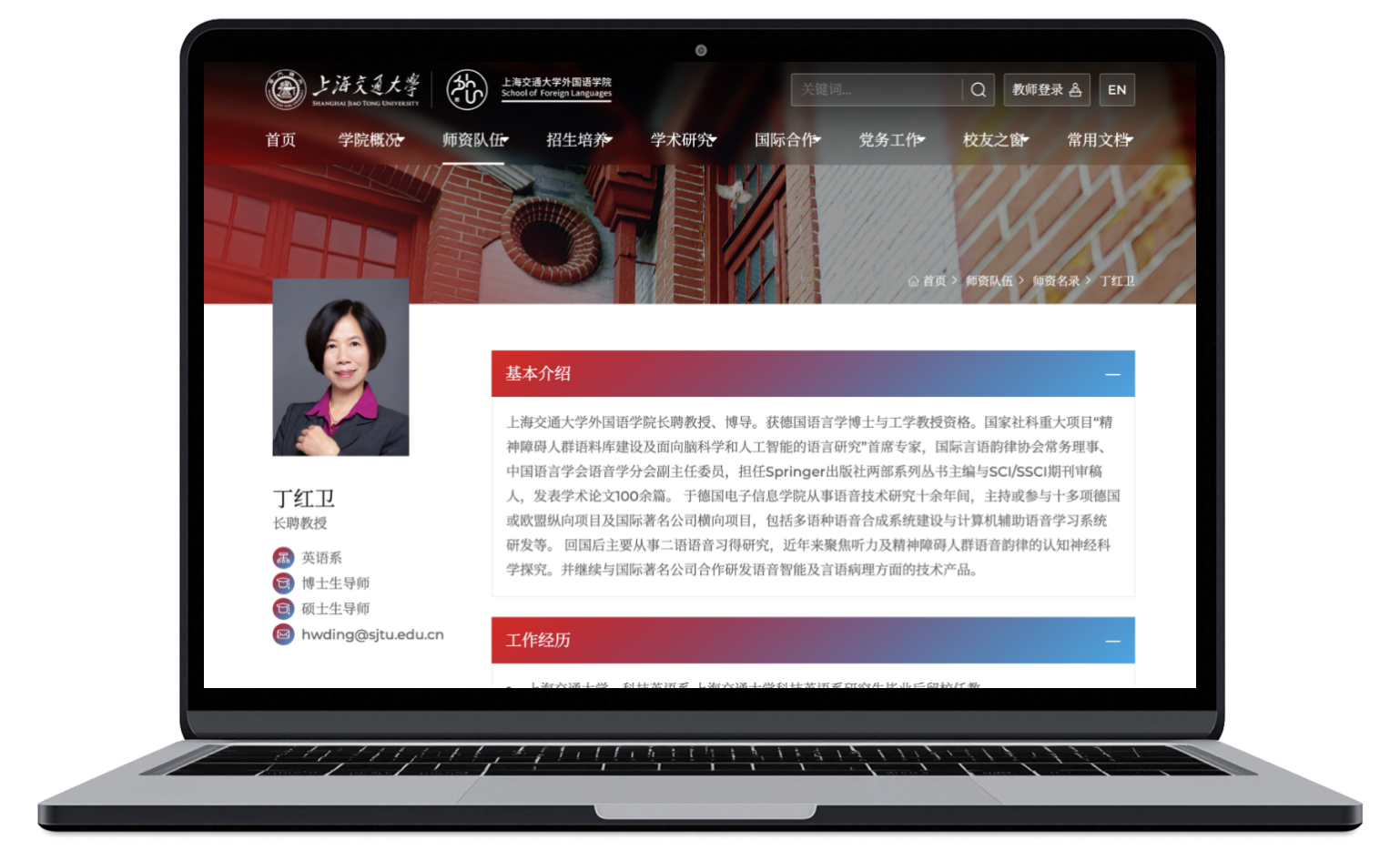全新上线的“师资队伍”模块不仅展示了教师的基本信息,更创新性地为每位教师创建了个人学术主页,详细呈现其研究方向、学术成果、授课情况等。高级搜索功能支持按专业领域、研究方向、授课语言等多维度筛选,便于学生了解教师专长,也方便学术同行寻找合作伙伴。