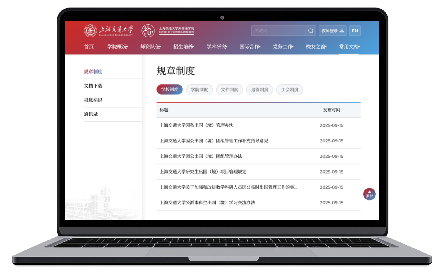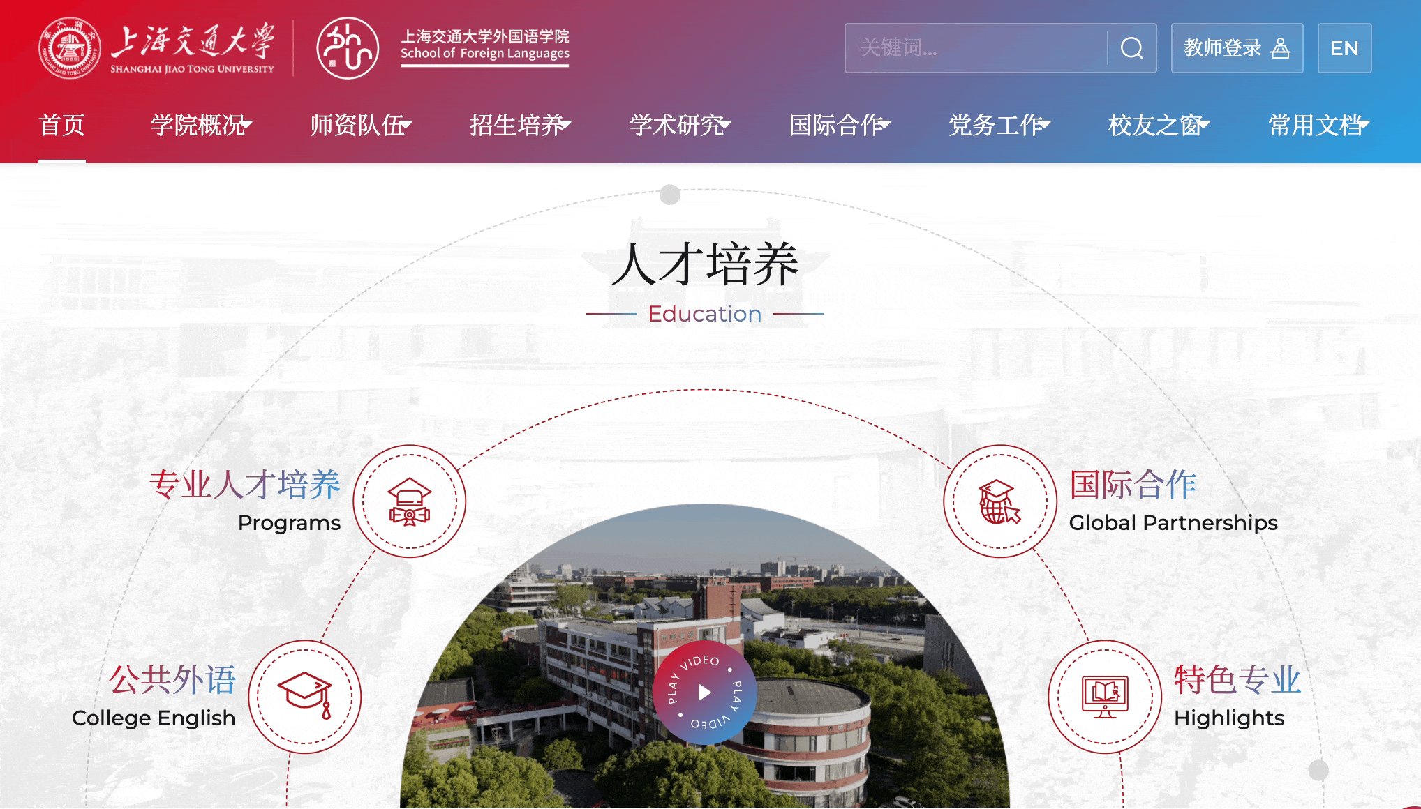 红色象征热情与活力,代表着外国语学院师生对语言学习和跨文化交流的不懈热情,体现了学院开放包容的学术氛围。从首页的视觉焦点到导航栏的精致点缀,红色的巧妙运用既保持了学术机构的庄重感,又注入了与时俱进的活力元素。